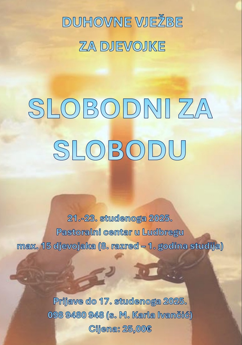 Duhovne vježbe za djevojke o temi Slobodni za slobodu održat će se od 21. do 23. studenoga u Pastoralnom centru u Ludbregu.