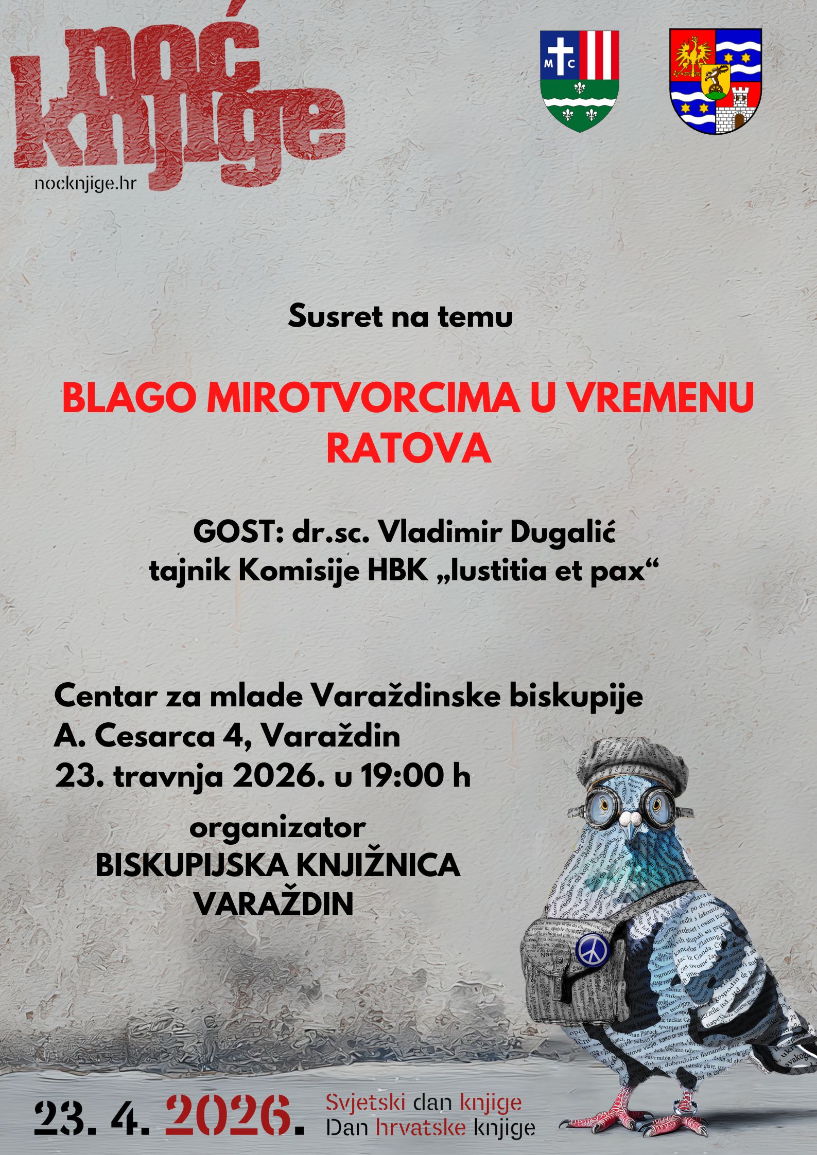 Na svjetski dan knjige, 23. travnja, Biskupijska knjižnica Varaždin organizira Noć knjige o temi: "Blago mirotvorcima u vremenu ratova".