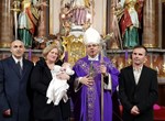 ĐURĐEVAC, 24.4.2022. Mons. Mrzljak krstio je Tomu peto dijete u obitelji Antonia i Martine Stanešić. Ujedno su djed Stjepan i baka Ljubica proslavili 50-tu obljetnicu braka.