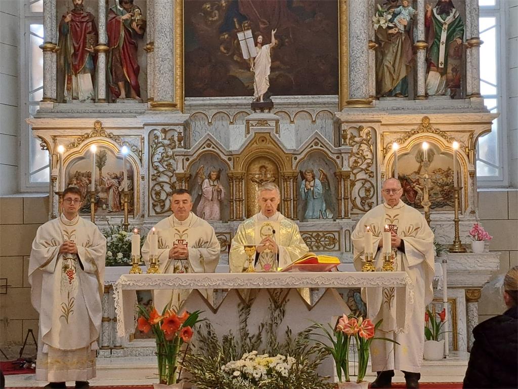 U euharistijskom slavlju propovjednik je istaknuo: „Kada doživimo navještaj Radosne vijesti, to nas može oduševiti i ohrabriti, tako da smo spremni trčati i drugima govoriti o tome što smo doživjeli. No da bi naše svjedočanstvo i vjera bili postojani potrebno je osobno se susreti s Uskrslim Gospodinom, zastati i iskazati mu naše štovanje. Potrebno je biti s Njim i On će nas tada moći ohrabriti.“ Prisutne je vjernike, zatim, ohrabrio riječima: „Zato je ovo uskrsno vrijeme, vrijeme milosti u kojem želimo ojačati svoju vjeru kroz slušanje Njegove riječi i čestim primanjem sakramenata zadobiti Njegovu milost, odnosno snagu. Tako ćemo i mi danas postati Njegovi odvažni svjedoci, kao što je to bio Petar, o kojem smo slušali u prvom čitanju, a i ostali apostoli u svoje vrijeme, kao i toliki sveci kroz povijest.“ Na nama je samo da uvijek ostanemo s Njim, da uvijek iznova otvaramo svoja srca Njegovoj ljubavi, jer On je stalno s nama i nikad nas ne ostavlja, čak ni onda kada možda mi to tako ne doživljavamo.
